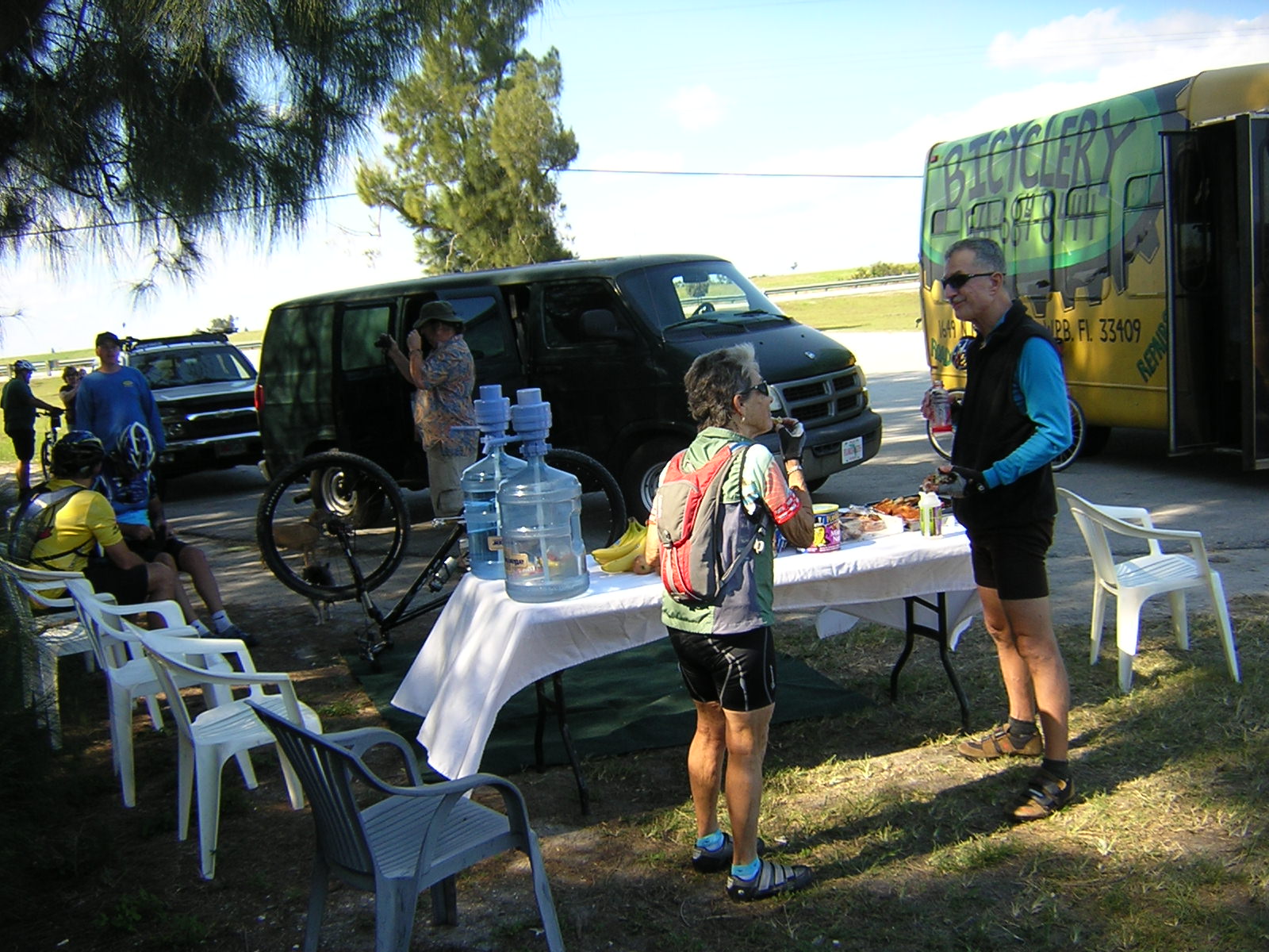 How many bike ride rest stops sport white tablecloths on the food table? This was a very elegant affair. I'm glad I wore my good jersey:-) |