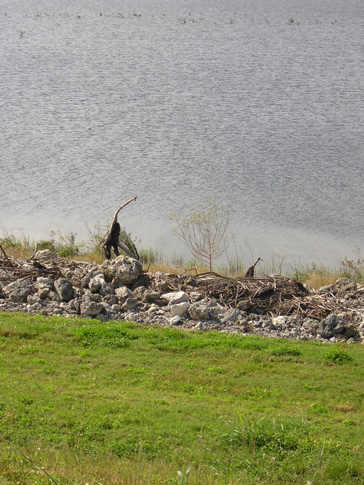 The lake ride is prettiest in the morning and evening. Sunset and moonrise are fun to watch as the light is beautifully reflected in the water. This is when the wildlife is most active as well. In the heat of the day, the wildlife viewing becomes questionable. Delerious from the sun, this man saw ostiches. Really, they are driftwood that has arranged itself in the form of birds. After careful inspection he realized it was all a mirage and made the long trek back to the trail. | ![]() |